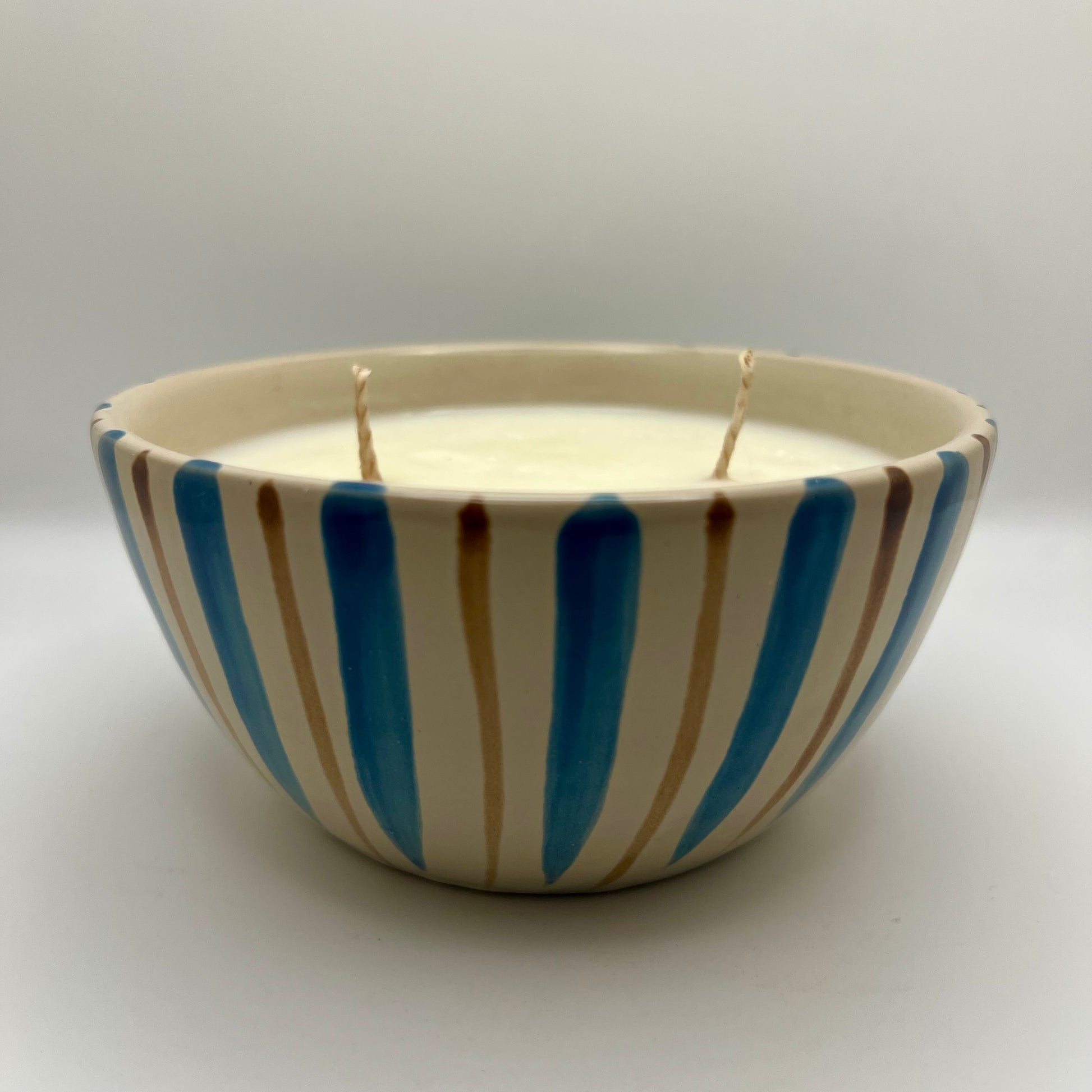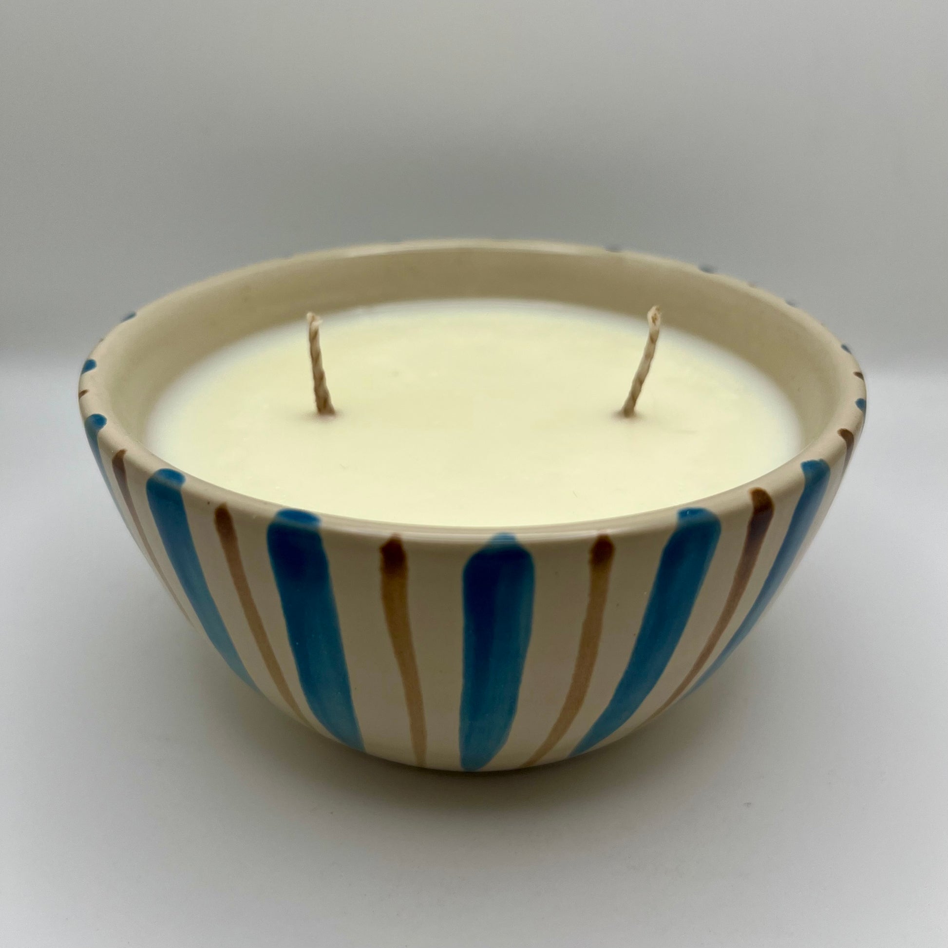 Painted bowl up-cycled into a wood sage & sea salt scented candle.
